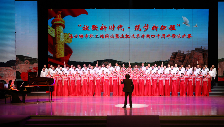 9月28日下午,由市委宣傳部、市總工會、市文廣新局聯(lián)合舉辦的“放歌新時代·筑夢新征程”——連云港市職工迎國慶暨慶祝改革開放四十周年歌詠比賽在市藝術(shù)中心隆重舉行。來自各縣區(qū)、各條戰(zhàn)線的16支代表隊參加比賽,經(jīng)過3個多小時緊張角逐,集團公司組織的100人合唱隊以《走向復(fù)興》、《天路》兩首激昂向上的歌曲脫穎而出,獲得一等獎。