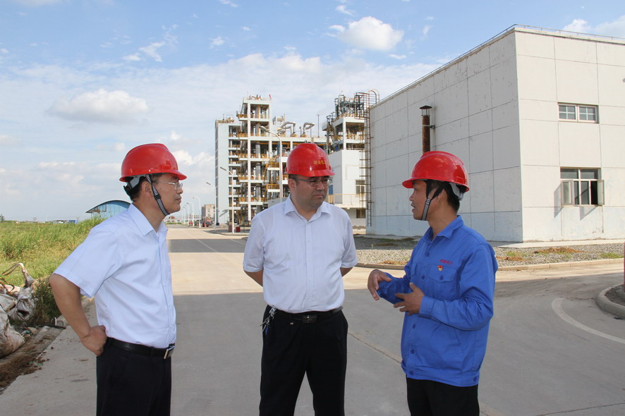楊龍一行先后查看了生產廠區各裝置運行情況、固廢庫暫存區、固廢暫存庫建設現場、廠內堿渣和鈦渣拋填試驗場地,了解氯化芐二期試生產、上下游廠家、外商貿易等情況。楊龍強調,要提高綠色發展意識,壓實各級責任,做好安全環保工作,并要以產品銷售、新項目開發、固廢綜合利用為抓手,全方位、多渠道拓展市場,為工投鹽化工產業發展夯實基礎。