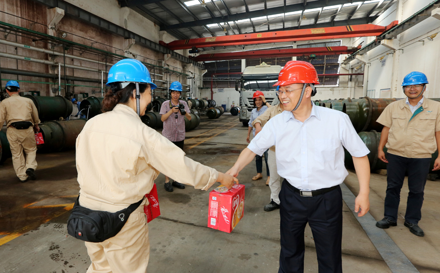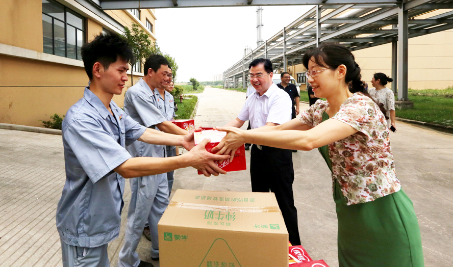 炎炎夏日送清涼,點滴關(guān)愛暖人心。連日來,驕陽似火,酷暑難耐。7月18-20日,集團公司領(lǐng)導(dǎo)楊龍、胡建明、張其海、朱天松、戴鴻鳴、汪群、匡友本等輕車簡從,分赴基層一線,進車間、入工地、到灘(田)頭,慰問在高溫下堅守崗位的廣大員工,送去綠豆、白糖等防暑降溫品,在炎炎夏日中將“清涼”送到職工心坎上。