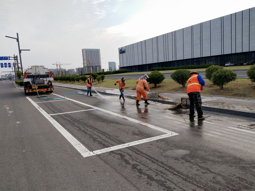 加強道路保潔工作力度,確保環境整治無盲區。公司在重點路段、交通要道、商業街區等人流密集區增加作業人員,延長作業時間,從每天凌晨6點到晚上8點,加強人工撿拾巡查保潔力度,重點關注機掃不到的角落和即時產生的垃圾。重點對花果山大道、東方大道、黃海大道242省道等路段進行多方位巡視,做好城市家居、路燈桿、橋梁桿的擦洗修補噴漆作業,發現路面有拋灑、雜物等立即進行清理,保障道路交通安全無阻。
