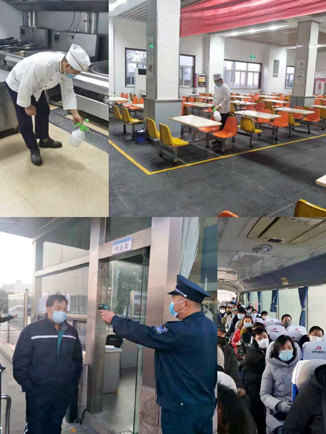 全力做到“三個全覆蓋”。一是消殺全覆蓋,做到無死角。結合疫情防控實施方案全面開展衛生整治消殺,對進廠車輛、食堂、廁所、辦公區、操作平臺、作業電梯等每4小時進行全面消毒。二是摸排全覆蓋,做到無縫隙。以部門為單位進行全員摸排并建立日報制度。在公司門口使用溫度檢測儀器測量入廠人員體溫,體溫正常允許進入,發現體溫異常人員立即上報公司安全部或者值班領導執行應急隔離救援。對外地回廠人員,特別對疫區或途徑疫區的到廠人員進行重點摸排。三是宣傳全覆蓋,做到無遺漏。利用公司宣傳欄、紅色長廊、網站、公眾號、微信群等宣傳陣地開展宣傳培訓,對員工開展疫情防控知識培訓。將公司的防控措施、應急預案、就醫流程、疫情防護等應知應會的防疫知識傳達到每一位員工,引導他們科學防疫。