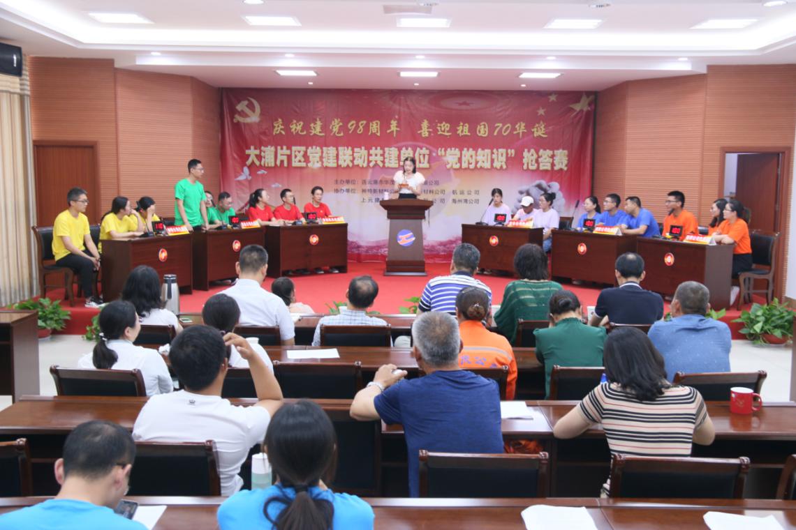 6月29日,大浦片區“1+6”黨建聯動共建單位再次相聚華茂,聯合舉辦“慶祝建黨98周年,喜迎祖國70華誕”“黨的知識”搶答賽活動,共建單位領導及黨員代表觀看了比賽。