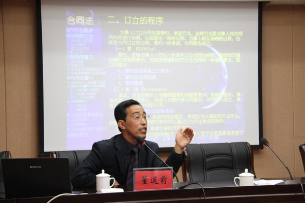 11月2日下午,公司在淮鹽大酒店召開黨委中心組學習《合同法》擴大會議,邀請連云港師專董道前教授講課。公司領導班子全體成員、各基層單位領導班子成員、公司機關全體管理人員、天然居管理人員參加學習。(司宣)