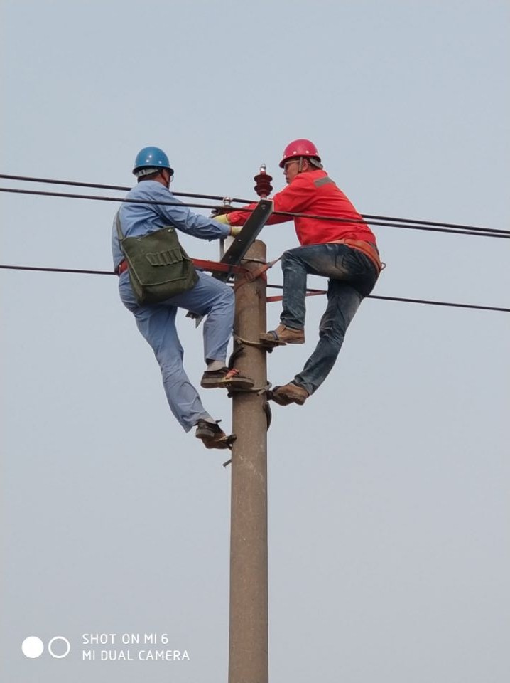 5月2日,張圩新農村小區配電安裝工程施工現場,一根15米的電線桿上,榮獲集團“技能大師”稱號的王建采用實踐教學的方法,親自為新員工祁明智做登桿、金具安裝、導線捆綁等示范操作,促其盡快掌握技術要領。