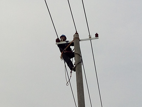 隨著臺南養殖線改造工程的正式施工,供電公司前期新招聘的外線工正式上桿作業。
