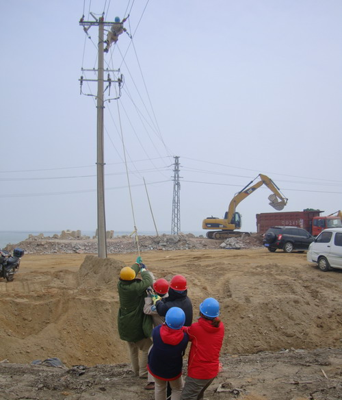11月17日,臺北供電所全體職工放棄休息,在開發(fā)區(qū)大浦工業(yè)園區(qū)架設供電線路,保證園區(qū)建設單位按時開工。