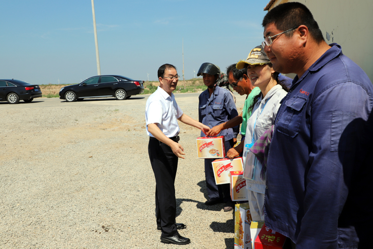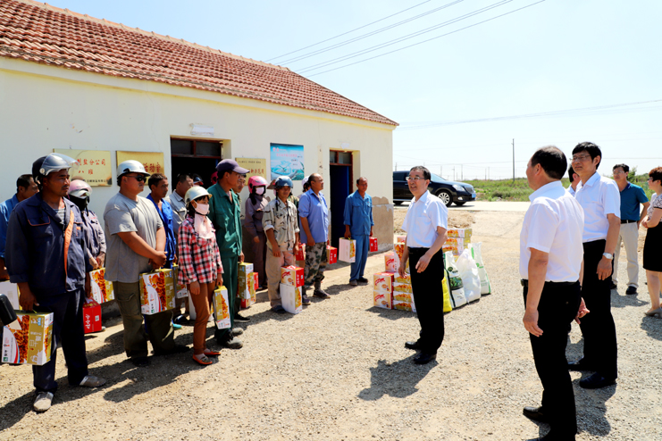 入伏以來(lái),持續(xù)高溫,為確保一線生產(chǎn)單位工作順利開展,保證員工身體健康。7月18日上午,集團(tuán)公司總經(jīng)理胡建明、副總經(jīng)理張其海一行深入日曬制鹽公司走訪慰問一線職工,把綠豆、飲料等慰問品送到他們手中,在炎炎夏季,為一線職工送去集團(tuán)公司領(lǐng)導(dǎo)的深切關(guān)懷與陣陣清涼。