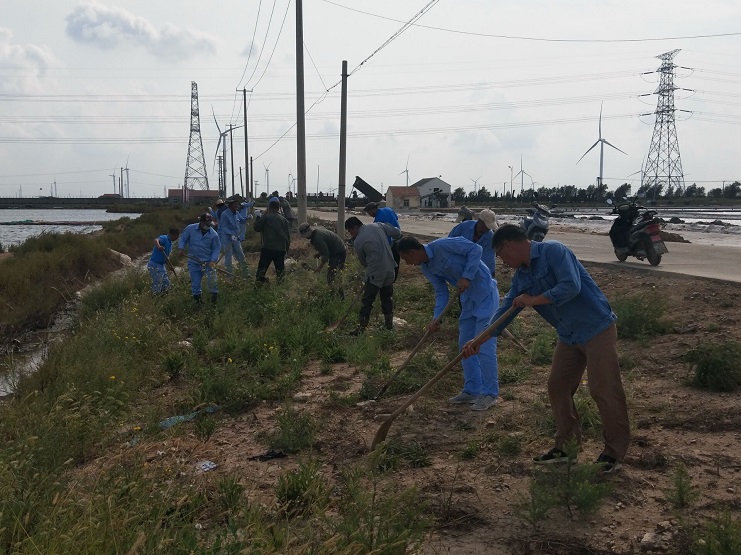 各班組抽調(diào)生產(chǎn)骨干由班長親自帶隊(duì),對(duì)0班一期道路兩邊的雜草、廩基、副廩基、大池道、門面溝,值班房等進(jìn)行了整治。大大改善了灘容灘貌,新河員工們發(fā)揮了不怕臟不怕累的精神,并努力推動(dòng)養(yǎng)成人人愛護(hù)環(huán)境,人人保護(hù)環(huán)境的良好氛圍,使新河制鹽公司環(huán)境整治工作再上一個(gè)新的臺(tái)階。(李明佰)