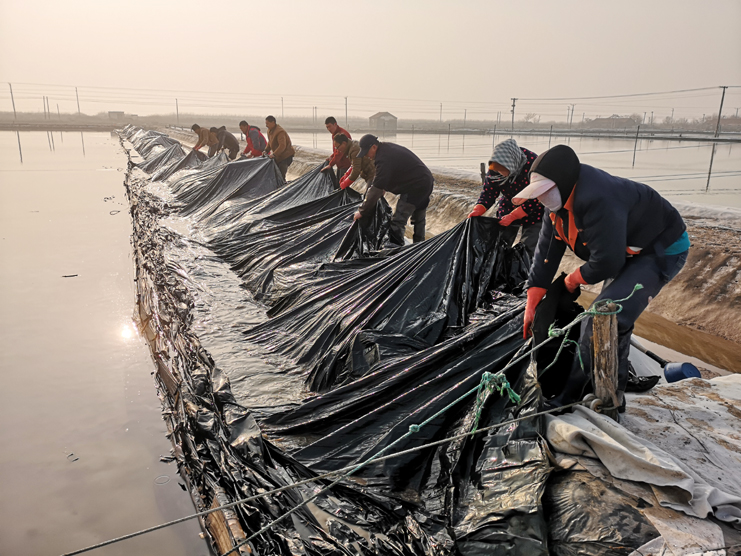 進入5月下旬,天氣時陰時晴,新河制鹽分公司積極組織勞動力,要求各班組做到扒鹽和塑布安裝相結合、相推進,截至當前,180塊計5400公畝塑布已經安裝完畢,此項工作的完成對降低鹵耗,減少跑冒滴漏起著決定性作用。(程龍)