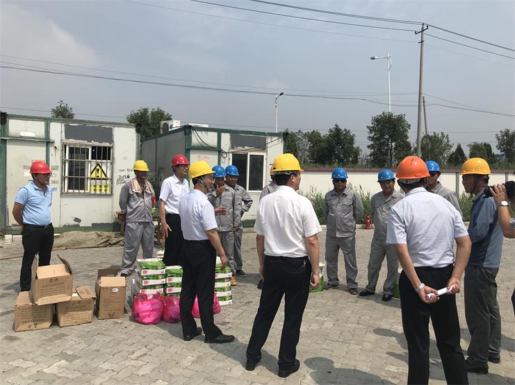 8月1日上午,工投集團總經理胡建明、副總經理張其海等一行人在灌西投資公司董事長李國文、黨委副書記王宏、分管領導劉殿龍的陪同下來到宵洋物流碼頭開展“夏日送清涼”慰問活動,為奮戰在一線的員工們送來牛奶、綠豆、白糖等防暑降溫物品。期間,胡建明總經理等人同宵洋碼頭的一線員工們親切交談,詳細詢問他們的生產生活情況,同時強調要盡量避開高溫時段進行作業。隨后集團總經理胡建明等一行人也聽取了工作人員講解現場施工安全和后勤保障的開展情況,并再次要求一定要做好夏季安全生產和防暑降溫工作。落實各項防暑降溫措施,強化安全責任制,為員工提供良好的安全生產環境。(宵洋物流 張寶同)