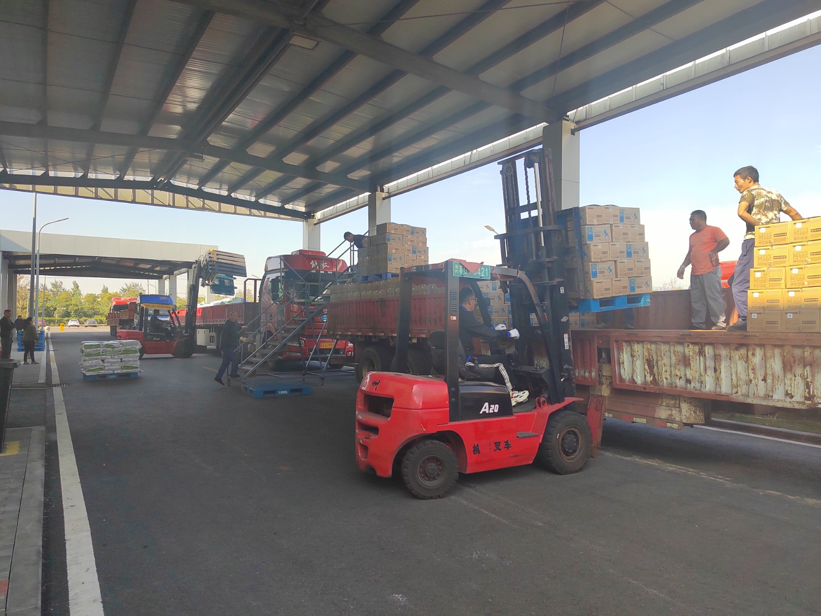公司進入“大干100天,沖刺雙二零”關鍵階段,裝車量激增,一輛輛卡車在廠區內排隊待裝。時間緊,任務重,面對巨大的裝車壓力,裝卸班組充分利用旋轉叉車特性,開展分區分組裝車作業,極大減少了人力成本和勞動強度,提高了工作效率,為確保裝車任務的順利完成提供有力保障。(徐丹丹)