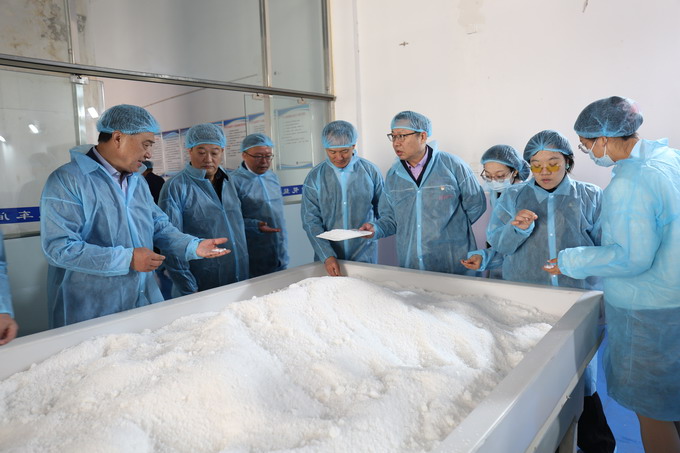 10月13日上午,蘇鹽協會副理事長伏運景帶領省戰略與發展研究中心及省經濟和信息化研究院相關研究人員一行,到我公司開展編撰省鹽行業年度發展報告相關企業調研。集團公司黨委委員、總會計師匡友本,我公司主要領導陪同調研。伏運景一行參觀了公司雪花鹽車間、包裝鹽車間,聽取公司基本情況和發展情況介紹。伏運景對我公司充分重視本次調研工作表示感謝,肯定了鹽改以來我公司先導性發展經驗和成就。(金宣)