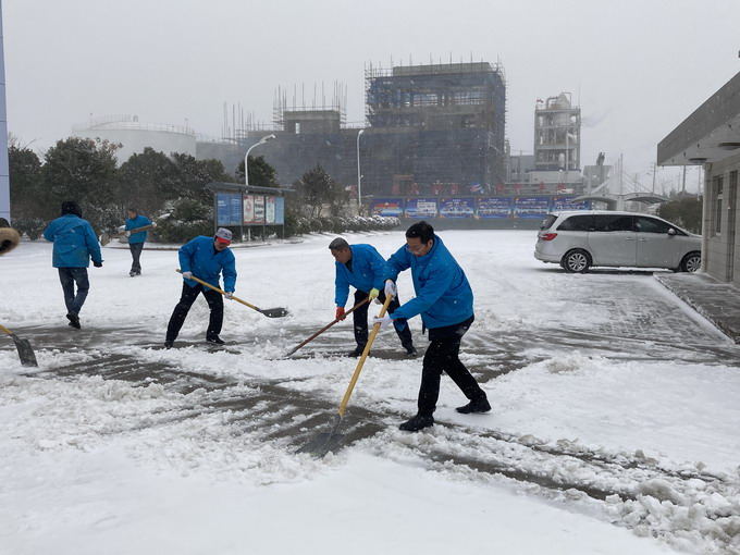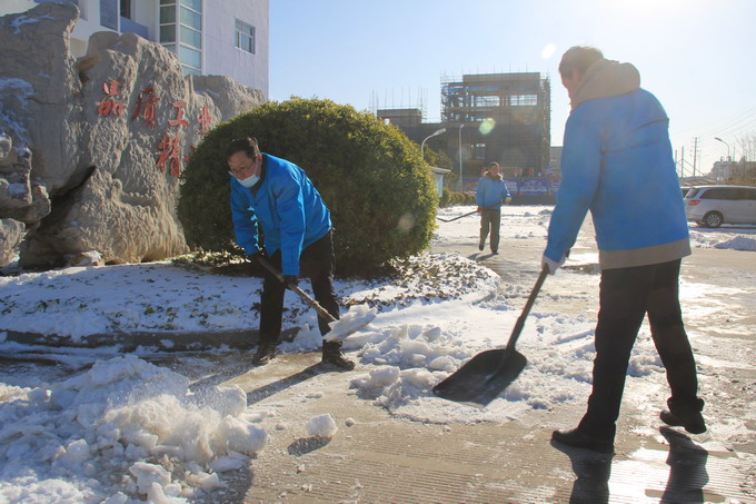 12月29日,連云港市各地普降大雪,氣溫低、積雪厚、道路結冰,給公司職工的安全出行和生產生活帶來很多不便。29-30日,公司領導朱桂玉、曹開明、田磊、何啟明、邵琴、李忠祥帶領廣大職工群眾開展了義務掃雪活動。大家冒著風雪,不畏嚴寒,對路面積雪進行清掃,鏟除了廠區主干道的冰層,保障了公司職工安全出行和安全生產工作的開展。(金宣)