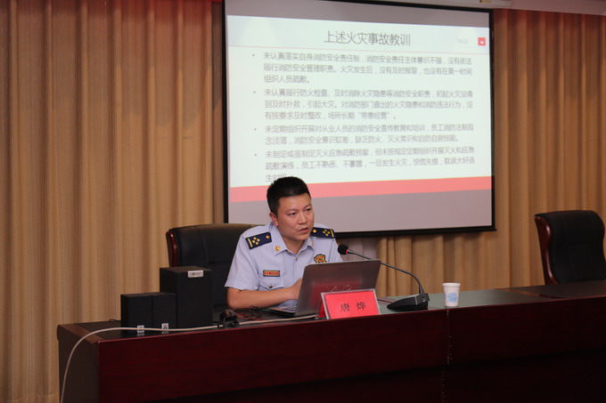 為規范消防安全管理,提高公司干部職工消防安全意識和火災應急處置能力,7月7日,我公司邀請連云區消防隊副隊長唐燁,在三樓會議室開展消防安全知識培訓。公司董事長、黨委書記、總經理朱桂玉,黨委副書記、工會主席曹開明,副總經理何啟明,總經理助理李忠祥,各單位、車間、部室人員參加了培訓。