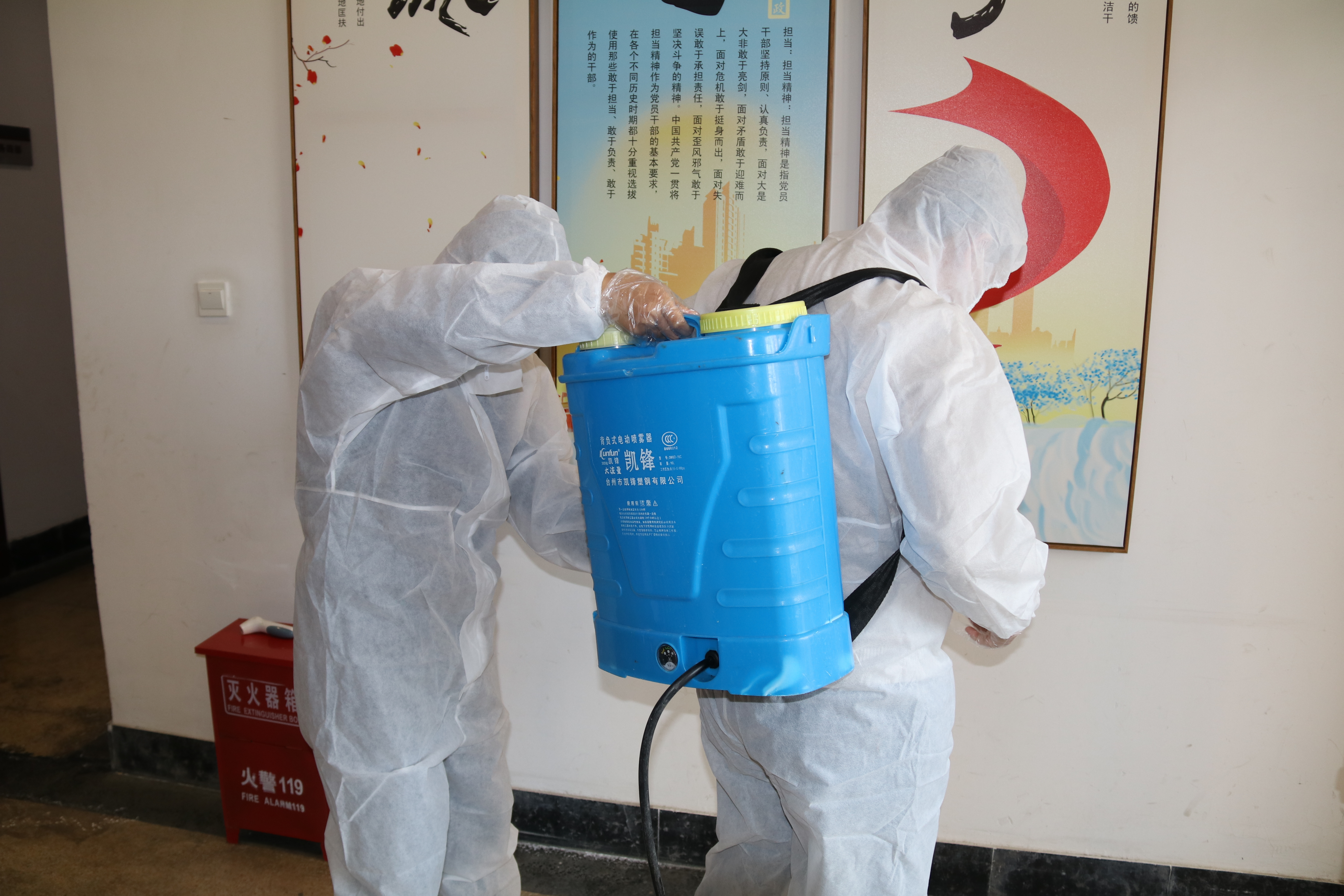 待轉走體溫異常者,消殺組對其所經區域進行全方位消殺,并通知全體工作人員做好防護工作。