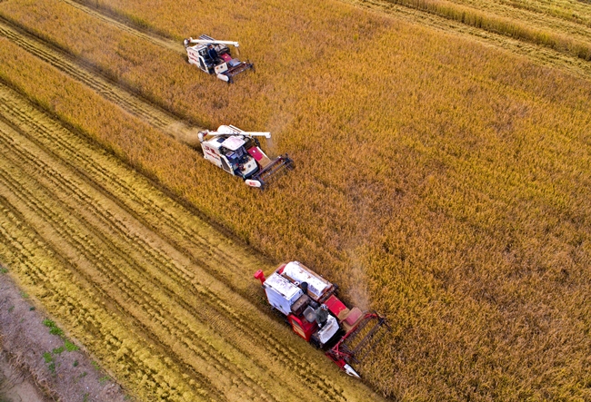 ? ?10月28日,青口投資公司的萬(wàn)畝鹽堿地標(biāo)準(zhǔn)化農(nóng)田里,有機(jī)水稻示范點(diǎn)率先開鐮收割,現(xiàn)代化收割機(jī)正開足馬力進(jìn)行水稻收割作業(yè),到處一派繁忙喜悅的秋收景象。