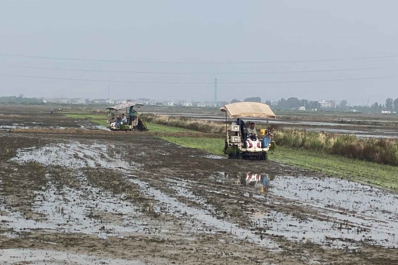 近日,大新農場搶抓有利天時,與農科院合作的新品種水稻啟動插秧作業,機器手正熟練地操作插秧機在稻田里穿梭,一撮撮青翠的秧苗被整齊有序地插在水田里,呈現出一幅綠色生態畫卷。(王璐)
