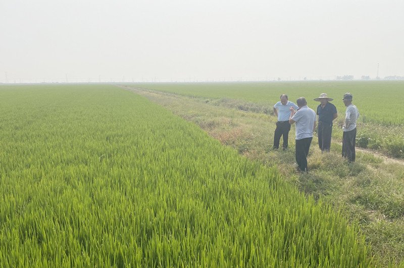 近日,大新農場1000余畝自種自營水稻示范區水稻長勢喜人,田野上稻花飄香。正值水稻抽穗揚花期,農場管理人員根據重要農時到地頭查看苗情,目前抽穗率達到百分之六十,預計中旬抽穗完成。(王 璐)