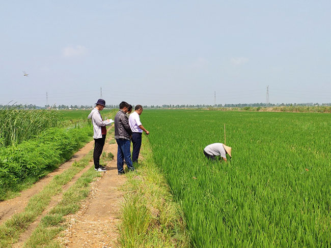 針對(duì)近期高溫高濕天氣,為做好水稻生產(chǎn)管理中期生產(chǎn)工作, 7月25日,農(nóng)場(chǎng)管理人員和農(nóng)技師頂著烈日深入田間地頭,對(duì)水稻基本苗的苗情苗量、病蟲害情況、中期水漿管理逐條田組進(jìn)行水稻中期生產(chǎn)檢查,對(duì)下一步的水漿管理和綜合防治提出指導(dǎo)意見,要求適時(shí)擱田,并于7月底至8月上旬進(jìn)行一次綜合防治。 (陳 ?。?/span>