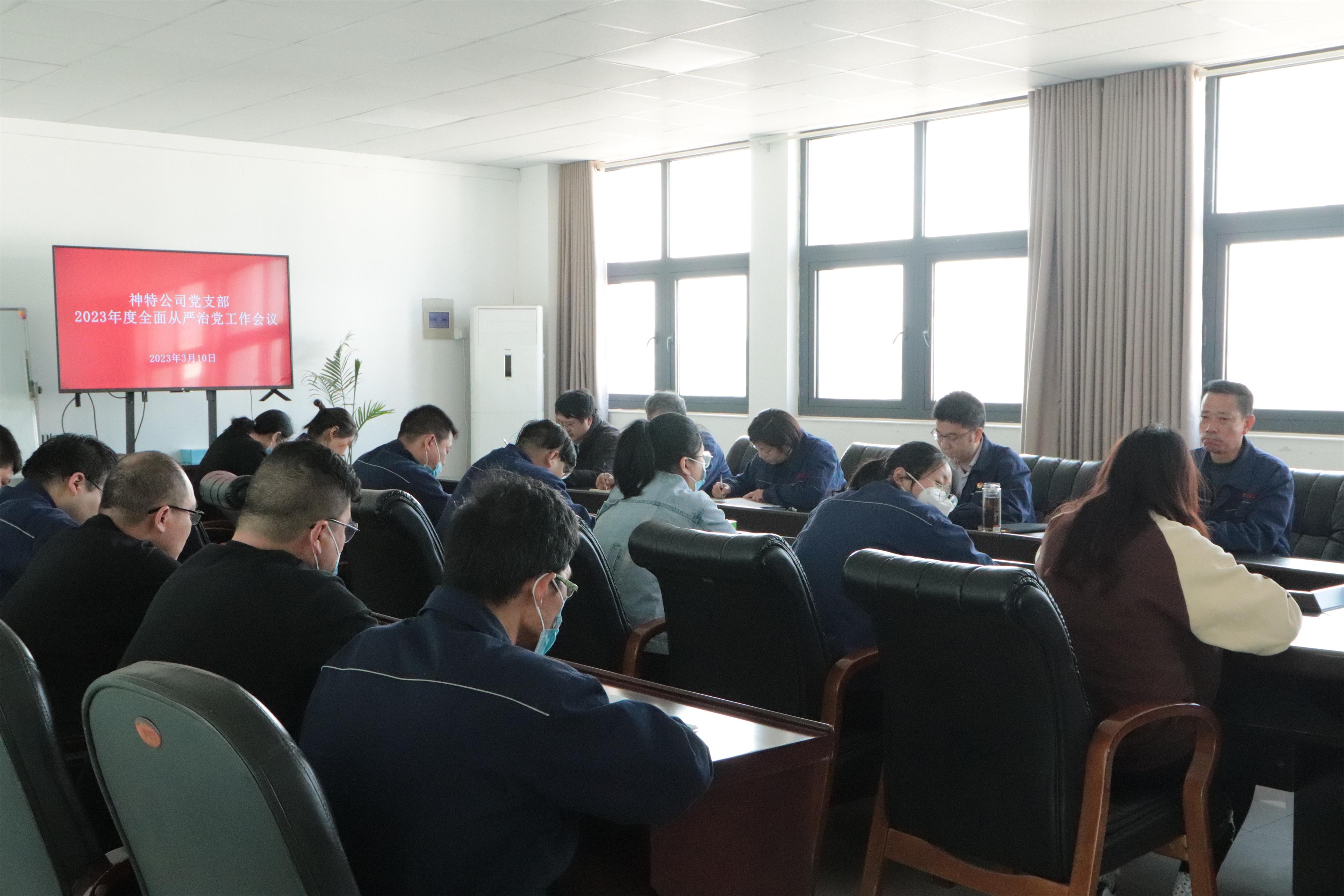 會上,公司黨支部副書記、紀檢委員、工會主席王爽芳作題為《全面貫徹二十大精神,精準護航高質量發展,為推進全面從嚴治黨提供堅強紀律保障》的報告,要求全體黨員以習近平新時代中國特色社會主義思想為指導,全面貫徹落實黨的二十大精神,堅決貫徹黨的自我革命戰略部署和全面從嚴治黨戰略方針,深入開展黨風廉政建設和反腐敗斗爭,推進新時代新征程紀檢監察工作高質量發展,持續發揮監督保障執行、促進完善發展作用,為神特公司改革發展、攻堅突破提供堅強保障。