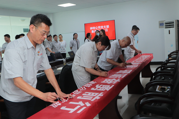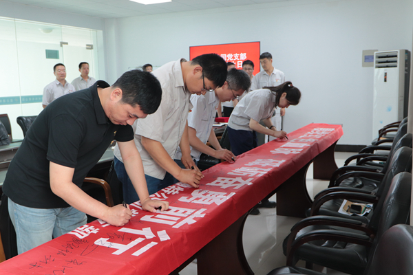 在七一來臨即將來臨之際,公司開展集體政治生日活動,組織全體黨員賡續紅色血脈,砥礪奮勇前行?;顒又校c會黨員重溫入黨誓詞,回憶入黨初心,并在條幅上簽名,作出鄭重承諾。公司黨支部對5名優秀共產黨員進行表彰,激勵全體黨員學先進、作表率,以優秀的成績向建黨100周年華誕獻禮。