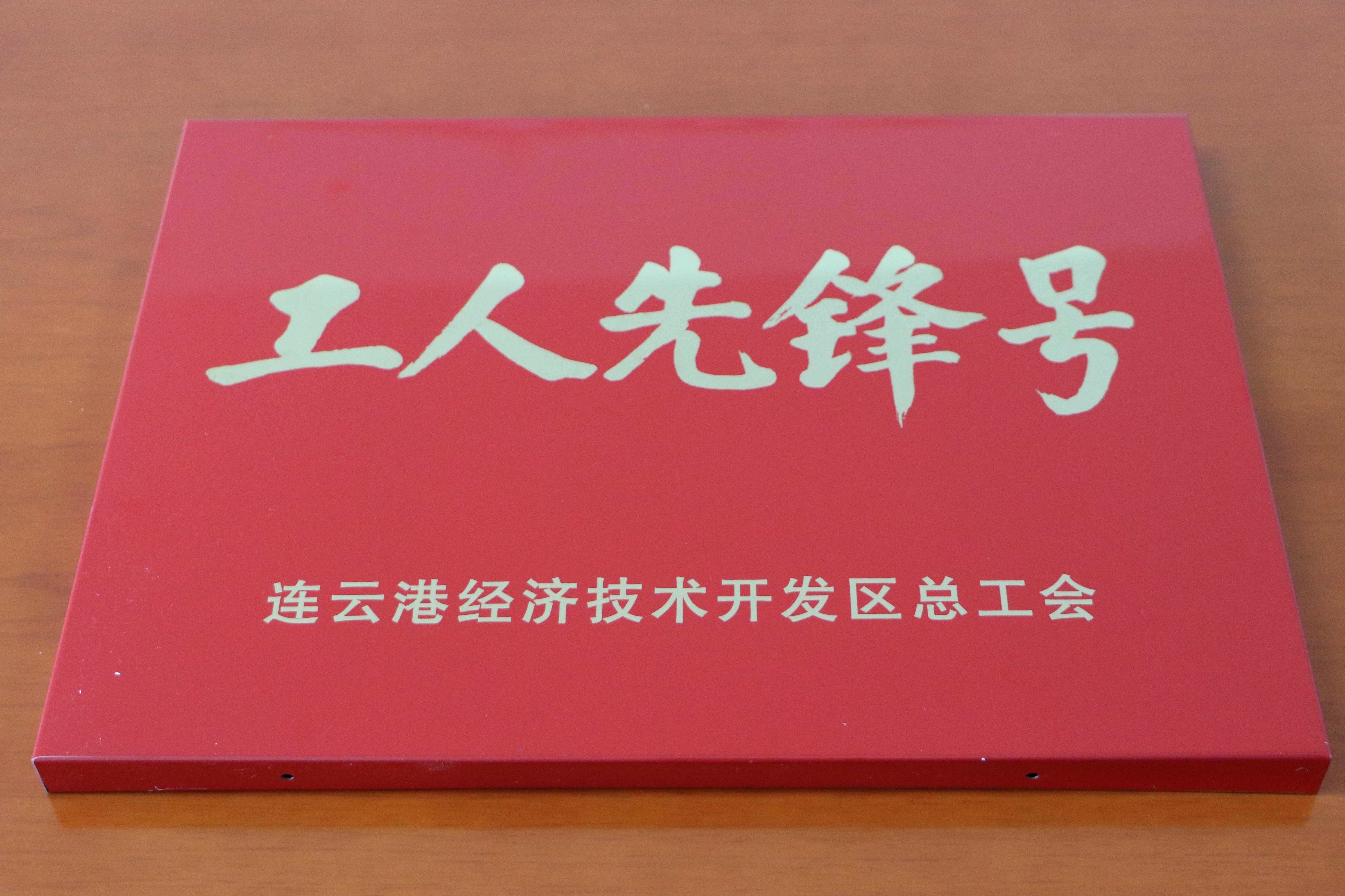 近日,公司捷報頻傳,自生產(chǎn)線一名員工被授予市勞模稱號后,5月11日上午,公司又從猴嘴街道辦事處工會領回獎牌,公司生產(chǎn)丙班被授予“連云港經(jīng)濟技術開發(fā)區(qū)工人先鋒號”。