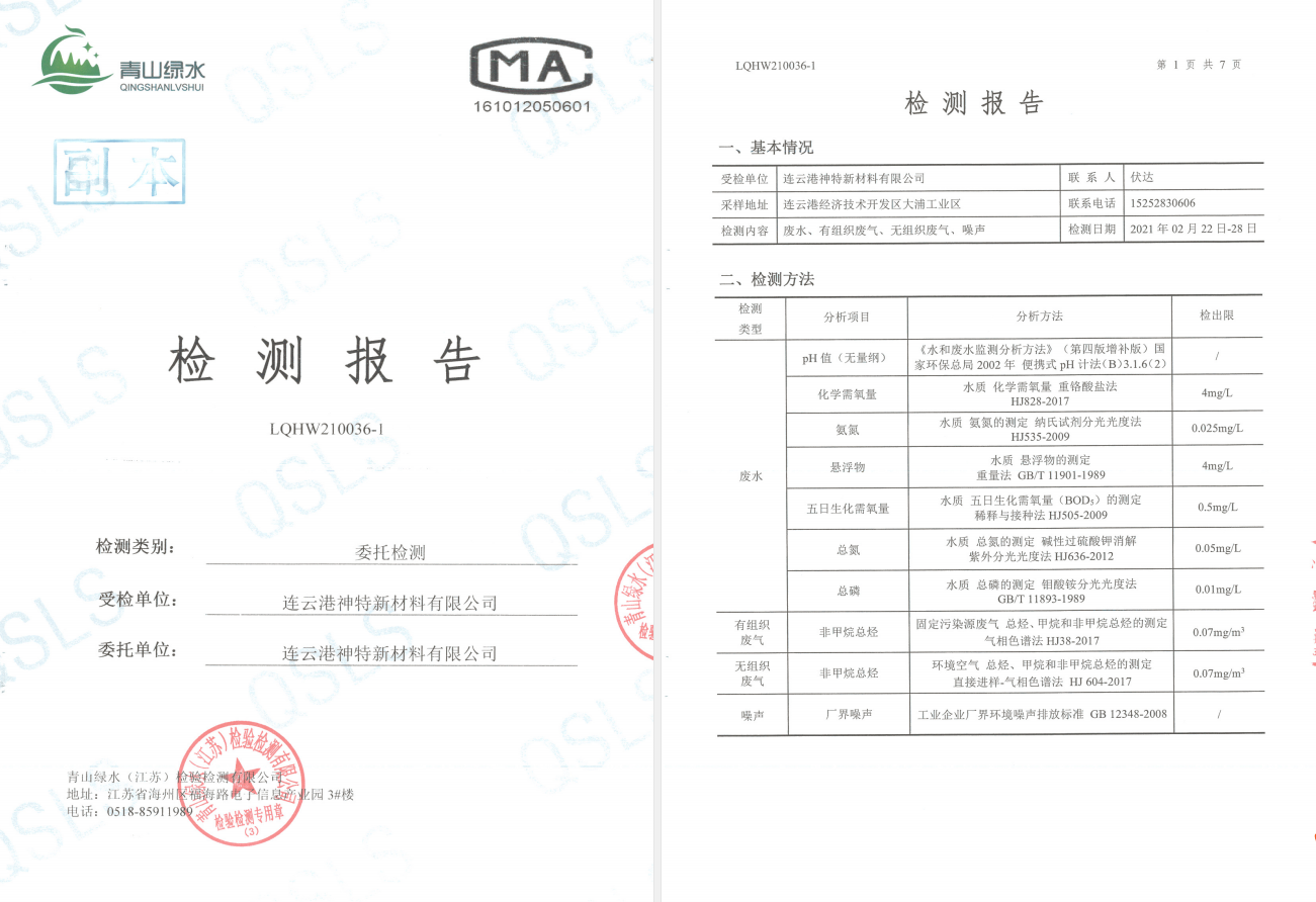 神特公司檢測報告公示