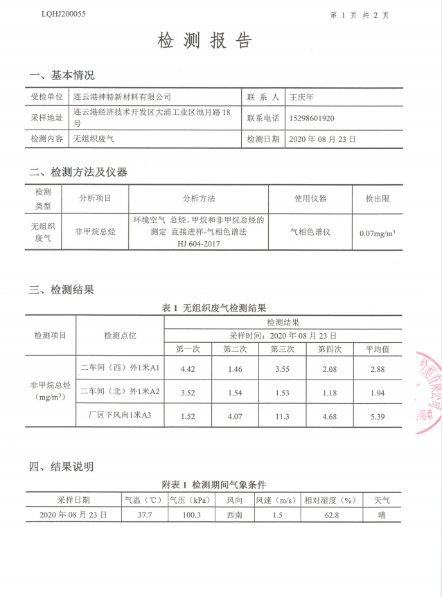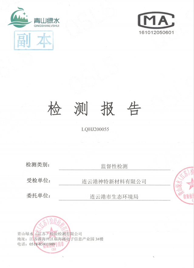 神特公司檢測報告公示