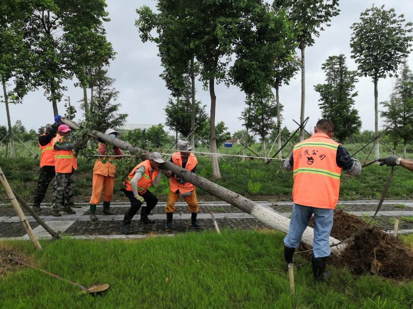 綠化分公司全力以赴筑牢汛期“安全網(wǎng)”,迅速開展應急處理,加大現(xiàn)場巡查力度,及時進行排澇清淤、樹木扶正、強基加固,全力排除險情,保障樹木、苗木安度汛期。截至20日17時,出動巡查人員 56人次,巡查車、高架車、貨車等車輛 24車次,扶正移栽倒伏樹木 70 株,修剪斷枝 12株,加固支撐168株。對云池路、玉竹路、匯晶路等22處路段排澇清淤,及時消除轄區(qū)內(nèi)安全隱患,保障了市民出行安全,鞏固了城市綠化成果。