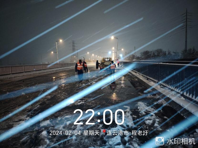 自2月2日以來,裕升養護分公司接到掃雪除冰緊急通知后積極響應,迅速調配人員和物資,等待暴雪降臨。在負責人霍正鋼的帶領下,公司第一時間成立應急搶險隊,這是一支由12名隊員,平均年齡在57歲所組成的隊伍,更是一支“特別能吃苦、特別能奉獻、特別能擔當”的隊伍。雪花于晚次日11點飄然而至,霍正鋼密切關注雪量以及積雪狀況,并做好指揮部署,同時通知各隊員立即開展道路掃雪除冰工作。