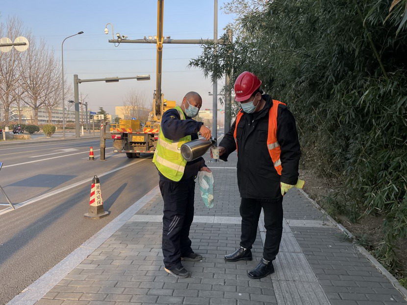 ? ? ? ??兵馬未動,糧草先行。翔立分會充分做好后勤保障工作,精心做好各項貼心服務,確保鐵軍出征無后顧之憂。考慮到傳統安全帽冬季不保暖,分會走訪多家店鋪,購置皮棉質硬頂安全帽,配備加絨保暖手套,讓職工在高空作業時既保暖又安全;天氣寒冷,為了讓職工能夠喝上一口熱水暖和暖和在工作,特意準備了姜茶水送到現場;為了解決吃飯難問題,分會一直在與快餐商家聯系,這家陽了不能送,馬上聯系下一家,前前后后換了4家快餐店等等,充分保證鐵軍的后勤保障無憂。