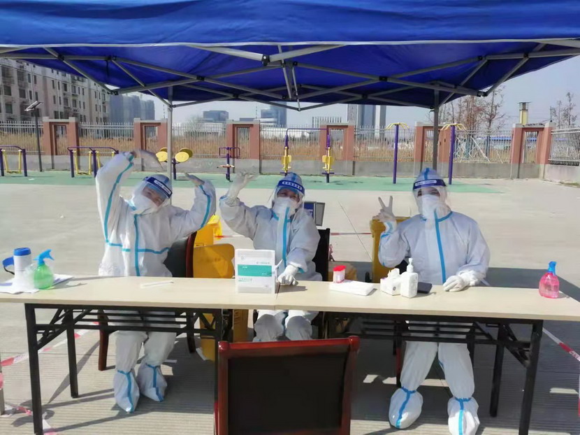 志愿服務篇。“現在我們是封控區,不能出去給政府添亂,閑也是閑著,所以社區一招手我們就來了”這是臺北女工委副主任宋文靜的一席話。這波疫情來的突然,緊急核酸檢測緊缺志愿者服務。在公司”戰疫情、爭貢獻“主題實踐活動感召下,她已經在小區擔綱核酸檢測志愿者有兩個夜晚了。而這一幕決不只在海州主城區,在開發區昌圩社區,臺北志愿服務隊已經成為社區防疫主力。疫情伊始,臺北下屬海州灣公司黨支部一班人就已經奮戰在社區防疫一線。黨支部副書記蘇玲、女工胡超,與專業醫護人員一道,穿上厚重防護服,直接站在核酸檢測最前線,這一站就是12小時。值班后稍作休息他們就又聯系總經理霍正鋼,翔立黨支部副書記姜海洋,入黨積極分子朱文健等參與聯防聯控,擔當疫情義務宣傳員。