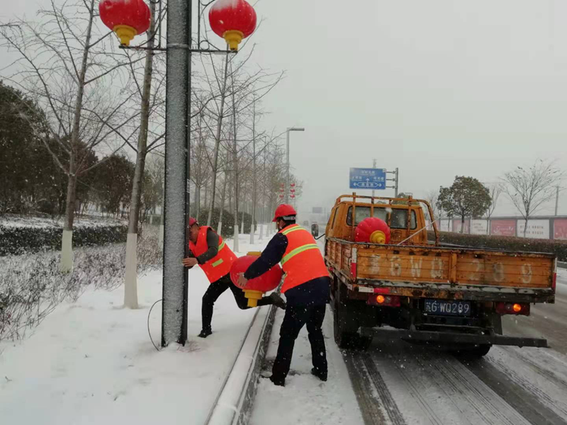 一夜的狂風(fēng)暴雪將花果山大道路上的亮化燈籠刮掉不少,該項(xiàng)工程是翔立分公司今年承接開發(fā)區(qū)市政第一個(gè)亮化工程,安裝維護(hù)質(zhì)量的好壞決定著這該項(xiàng)目工程的能否持續(xù)承接。帶著一份堅(jiān)守、心懷責(zé)任、更帶著翔立轉(zhuǎn)型發(fā)展的希望,“鐵軍”們一大早就已經(jīng)整裝待發(fā),奔赴施工現(xiàn)場(chǎng)收集整理燈籠。