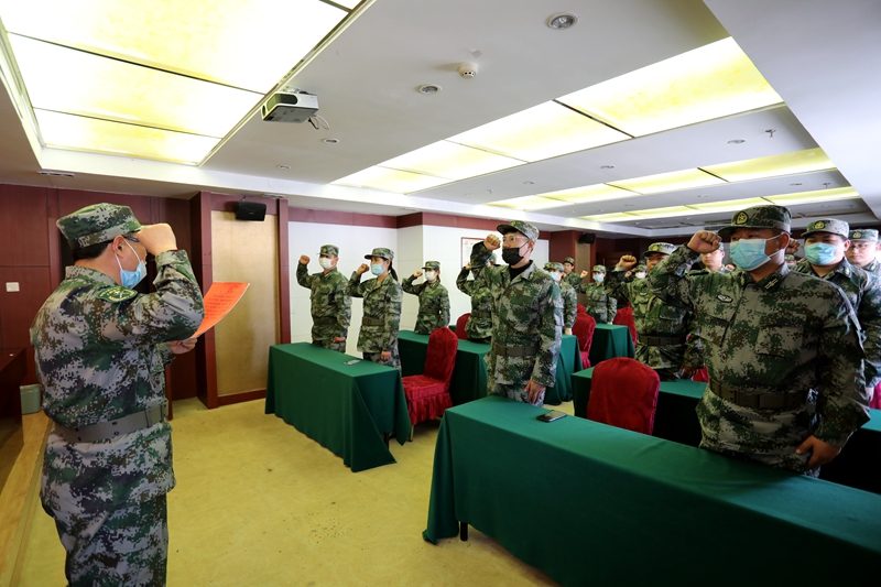 4月24日下午,投資公司2020年度民兵整組點驗大會在九樓會議室召開。公司海上綜合保障排30名民兵全員到場接受點驗,并莊嚴宣誓。