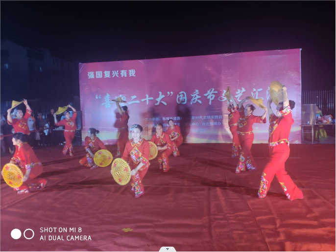 ? ?為迎接黨的二十大勝利召開,以良好的精神風貌向祖國73周年獻禮,豐富臺北鹽場小區黨員群眾精神文化生活,營造歡樂的節日氛圍。9月30日晚,由猴嘴街道昌圩社區新時代文明實踐站主辦,臺北猴嘴辦事處承辦的“喜迎二十大”為主題的國慶節文藝匯演在猴嘴昌圩小區精彩開演,吸引了眾多鹽場黨員群眾參與及觀看。?