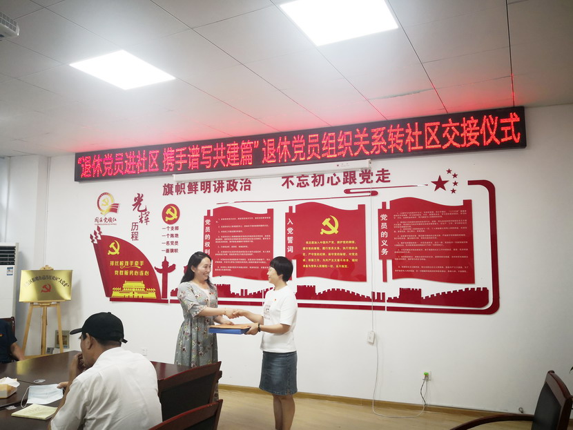 黨員組織關(guān)系規(guī)范轉(zhuǎn)接是事關(guān)黨員黨性和組織觀念的重要工作,是加強(qiáng)基層黨組織建設(shè)的基礎(chǔ)性工作。此次為退休黨員社會化管理工作啟動以來移交到社區(qū)的退休黨員舉辦組織關(guān)系轉(zhuǎn)接儀式,標(biāo)志著此項工作已經(jīng)步入了正常化軌道,也為后續(xù)新增退休黨員“即退即辦”常態(tài)化移交工作打好了基礎(chǔ)。
