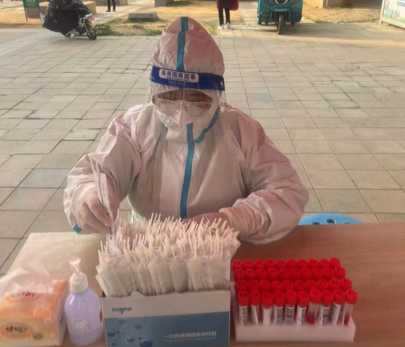 ? 9:00,所有人員就位,我也開始了我的“大白”體驗課,工作就是核對身份與二維碼一致,并進(jìn)行拍照采樣。身穿防護(hù)服,站到崗位上,面前就是群眾,心中滿腔責(zé)任感,使命感。