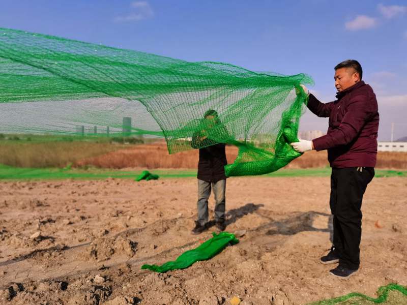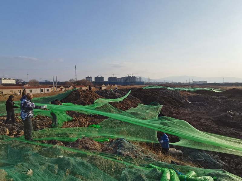 一名黨員就是一面旗幟,十余處山丘上,不只是一面“黨員突擊隊”旗,而是幾十上百面的“戰旗”。在鮮紅旗幟的引領下,僅僅一天時間,突擊隊員們“沖鋒陷陣”,攻克一個又一個“山頭”,鋪設800余張防塵網,共計200余畝裸土。