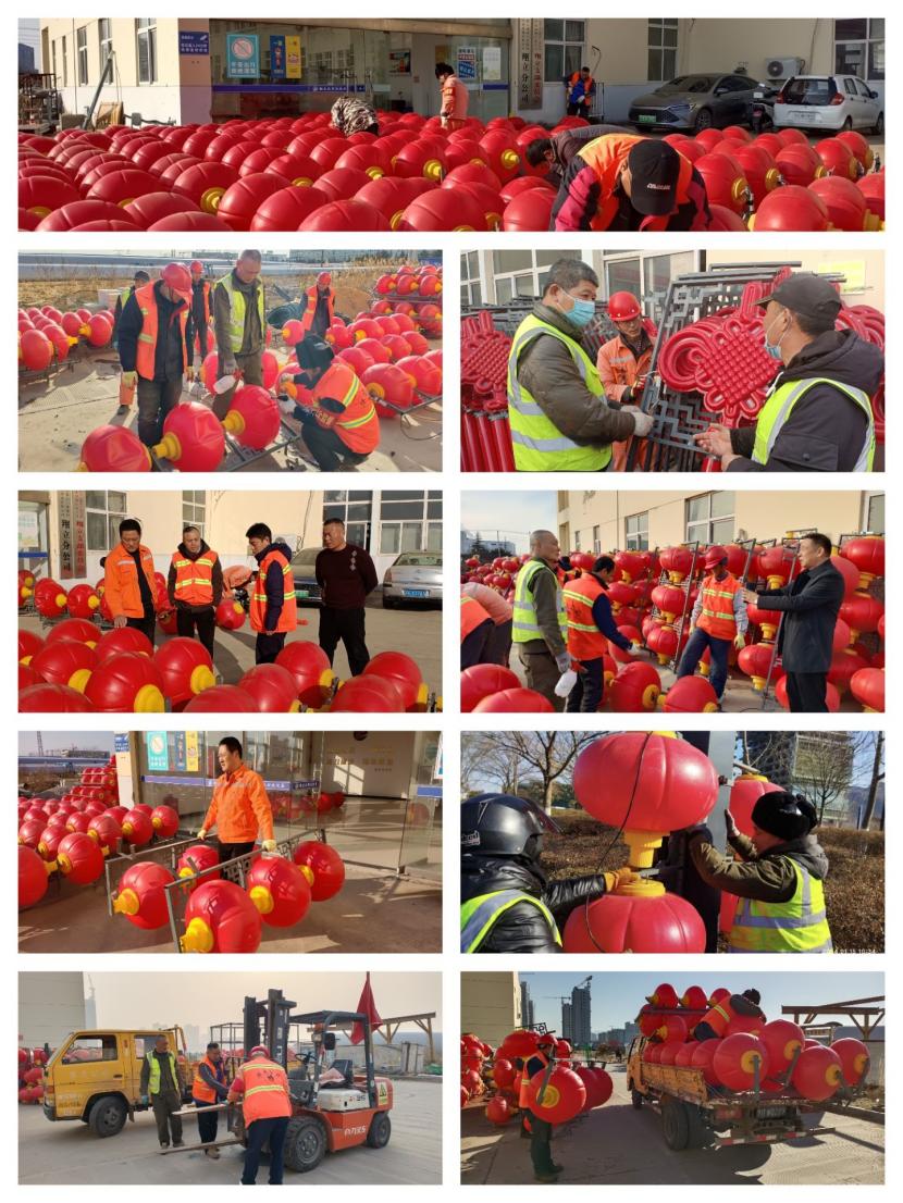 突出一個“聚”字,與以往不同的是,這次燈籠安裝工作也得到了兄弟單位的大力支持,益豐、盛達(dá)、資源、悅升公司在自身也有工程人手緊張的情況下先后派遣了12人次的電工、安全員、運輸車輛駕駛員等精兵強將支援本次燈籠懸掛精品工程突擊工作。人多力量大,白天安裝工程結(jié)束后,每天晚上公司組織專人對已安裝好燈籠的每條路段進(jìn)行夜間巡查,對不亮的燈籠做好標(biāo)記,白天進(jìn)行修理,保障安裝的燈籠中國結(jié)百分之百的亮化率。