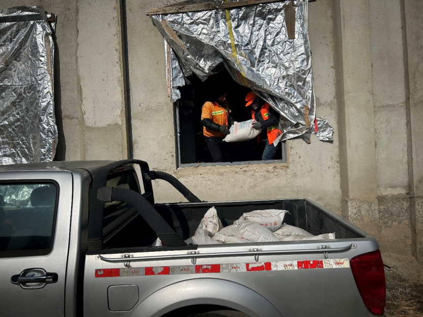本次任務共出動環衛分公司鏟車一輛、自卸車一輛、保潔員工12名,每個班放置融雪劑40袋,歷時兩個下午時間將九個班共計360余袋融雪劑全部發放到位。