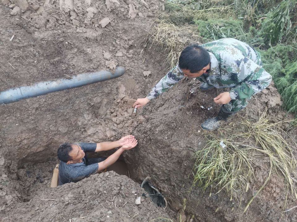 泵站是大浦工區(qū)的命脈,也是生存之源。泵站三人組席強(qiáng)余、喬效富、龔大春憑著敏銳的洞察力,迅速關(guān)掉閥門,帶上工具,立刻出發(fā)排查檢修輸鹵管道。由于昨夜突降暴雨,地面潮濕,給排查工作帶來了相當(dāng)大的困難,三人組按照多年的工作經(jīng)驗(yàn),當(dāng)機(jī)立斷,分工分路段進(jìn)行排查,與時(shí)間賽跑,早點(diǎn)找到損壞的管道就能減少鹵水的損失。經(jīng)過三人精心細(xì)致的排查,徒步六公里,終于在臺(tái)北汽車城一處雜草叢生的區(qū)域發(fā)現(xiàn)了損壞的管道,此處管道是掩埋在泥土里面,修復(fù)起來難度更大,三人立即拿起鐵锨開挖,席強(qiáng)余顧不上管道溝里齊膝渾濁的雨水,穿著膠鞋就淌進(jìn)溝里,坐騎在管道上,雙手伸進(jìn)水里,嫻熟的進(jìn)行修復(fù)。經(jīng)過近兩個(gè)小時(shí)的維修,管道恢復(fù)正常供鹵,大程度減少了鹵水損失,為原鹽順利生產(chǎn)提供了堅(jiān)強(qiáng)有力的保障。