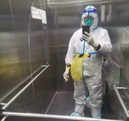 ? ? 14日? 雷聲驟響,大雨突降,集合時間待定,安心的吃了點早飯,依舊不敢吃多。9點開始,第九輪。我出狀況了,剛采一會口罩松了,眼鏡、面屏上全是霧氣,什么也看不見,沒法操作。為了不影響進度我被換下,原定入戶采集的志愿者頂上。防護服脫了就浪費了,我就等入戶醫生到達,去上門采集。掃樓和定點完全不一樣,悶、熱,大白服都濕透了。13.40結束,全身“噴殺”消毒,脫裝備,再噴消。飯后沒安排我工作,做了核酸后在小區里坐了幾個小時,心里始終不能平靜,害怕,不安占據了我的內心,即使做了防護措施但是還是有很大風險,我也有家人,所以我害怕,真的害怕!“沒事的”“沒事”最后還是妻子開解了我。