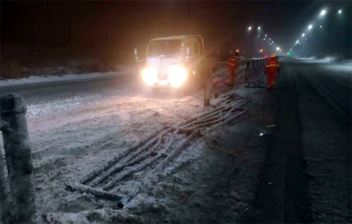 市政分公司根據(jù)公司安排,負(fù)責(zé)融雪劑裝卸工作,從2月3日下午到4日上午,市政分公司累計裝卸融雪劑已達150余噸。該分公司在做好保障融雪劑裝卸作業(yè)的同時,抽調(diào)4名精兵強將,處理因大雪導(dǎo)致的道路交通事故應(yīng)急處置4起,應(yīng)急處理道路護欄11節(jié),約38米,防止交通事故二次發(fā)生。在5日凌晨更是經(jīng)理盧正楊帶領(lǐng)10名黨員先鋒突擊隊,支援重點道路徐新路的融雪劑拋灑作業(yè),僅靠雙手揮著鐵锨,通宵奮戰(zhàn),迎難而上,高質(zhì)高效完成融雪劑拋灑作業(yè)路段。(李濤)