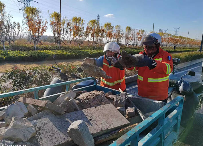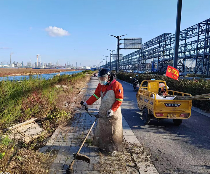 及時(shí)配合徐圩城建處理陬山路、石化七消防通道等路段施工產(chǎn)生動(dòng)態(tài)各種垃圾20多車,再次轉(zhuǎn)運(yùn)陬山路主道兩側(cè)綠化帶中石塊2000多斤。針對(duì)園區(qū)建設(shè)發(fā)展情況,序時(shí)推進(jìn)石化五道,四道樣板路工程打造,組織人員突擊清理輔道雜草近1000余米長,撿拾管廊下各種垃圾300余袋。勞動(dòng)現(xiàn)場,黨員生產(chǎn)骨干薛明柱、朱海勇等同志先鋒示范閃亮道路最前沿,用實(shí)際行動(dòng)保障園區(qū)美麗環(huán)境。